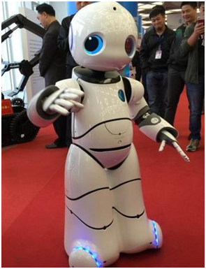 在博览会现场,一个大眼睛的"优友"机器人凭借出色的才艺让游人止步,"优友"不但独立主持了新闻发布会,还与观众幽默互动。作为身高达1.28米的类人形机器人, "优友"还与另外两台机器人跳起了"小苹果",其灵活的身形和移动、定位能力震撼全场。"优友"是继人形机器人Pepper后,全球第二款真正量产化的服务机器人。
