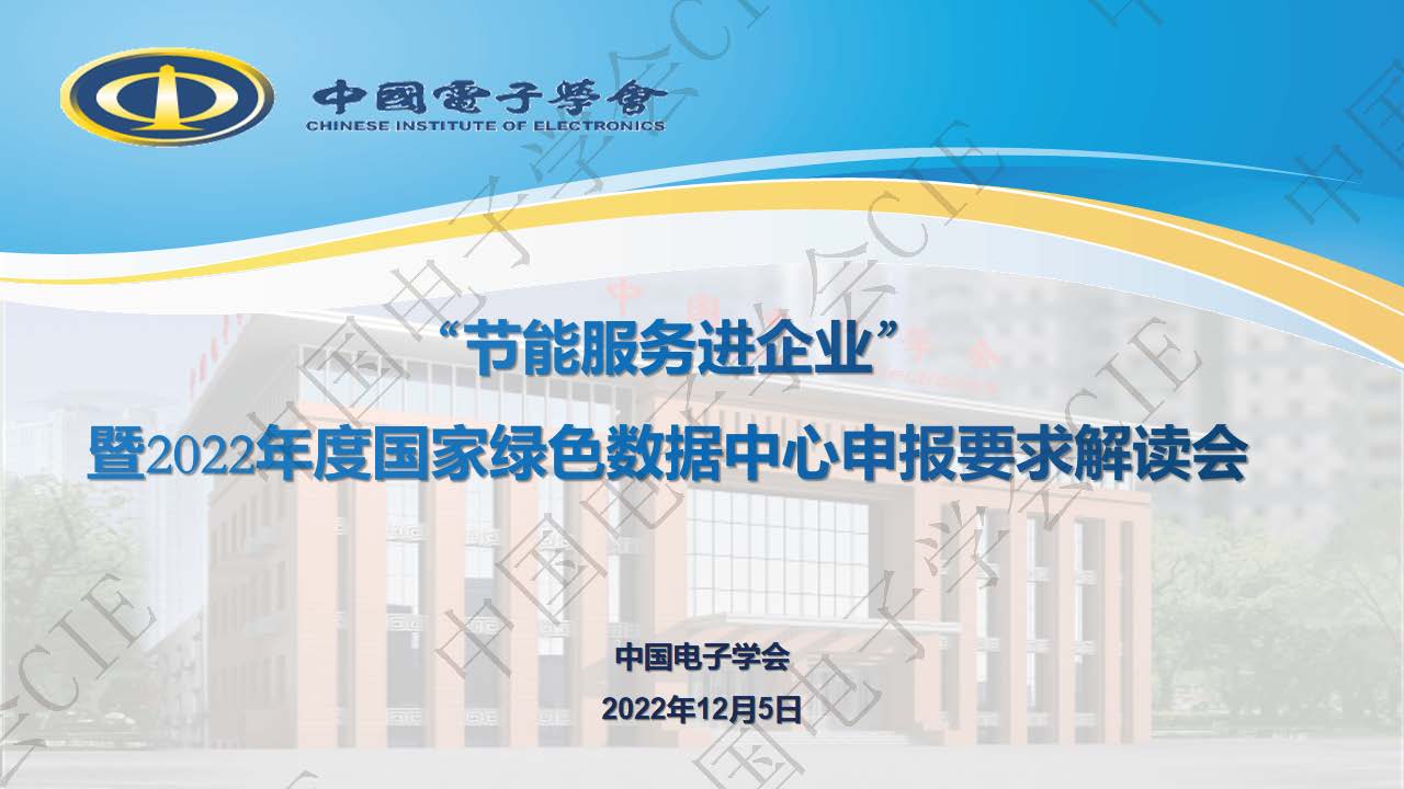 2022年12月5日,中国电子学会主办的“节能服务进企业”暨2022年度国家绿色数据中心申报要求解读会在线上成功召开。