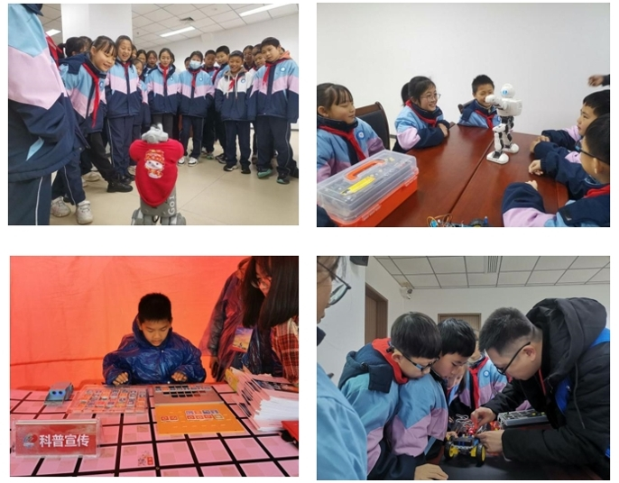 此外,科技志愿者们还展示了AI四足机器人、阿尔法机器人等科技产品,以及通过开源鸿蒙系统、裤兜实物编程平台创作的各类作品。这些展示不仅让学生们大开眼界,也让他们深刻感受到机器人在各个领域,尤其是教育领域中的广泛应用和巨大潜力。