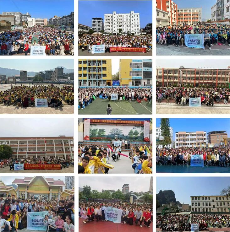 为提升青少年科学素养,助力科技教育蓬勃发展,2025年3月至5月期间,中国电子学会科技志愿者总队广西分队携手凭祥市教育局、钟山县科学技术协会、钟山县教育局、桂林市七星区科学技术协会、兴安县科学技术协会及昭平县科学技术协会,共同举办了2025年中国电子学会“烛光义教”公益科普系列活动,为广西的青少年们带来了一场场科技盛宴。