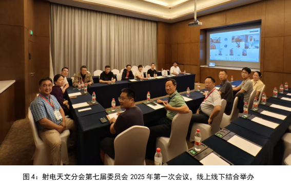 研讨会期间,中国电子学会射电天文分会于7月22日晚召开了第七届委员会第五次委员会议(即2025年度第一次会议),射电天文分会顾问委员、主任委员、副主任委员、委员及其委派代表(线上和线下)共计29人参加。会议由韩金林主任委员主持,带领与会顾问、委员及委员代表一起开展党小组活动,学习中央八项规定精神和中国科协关于科技社团举办活动的若干管理规定,就科技创新和射电天文领域的未来发展进行了讨论。会上还讨论了电子学会新的评估考核体系,总结了2025年度射电天文分会工作,并讨论制定2026年度工作计划。