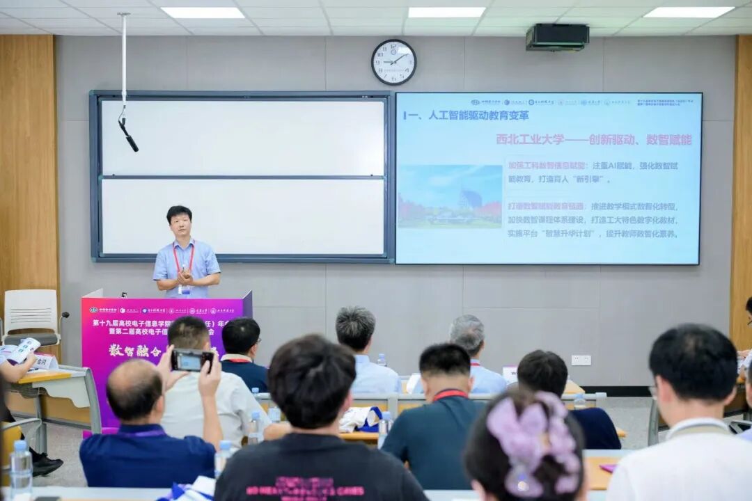 西北工业大学电子信息学院副院长高永胜作题为《数智赋能信息类公共教学平台建设》的主题报告。高永胜围绕人工智能驱动教育变革、西工大“总师型”人才培养特色、信息类综合实验平台和数值赋能教育改革成效等四个方面,介绍了以课程建设为核心,加快新时代信息赋能“三航”特色发展,电子信息一流人才培养改革的具体举措。