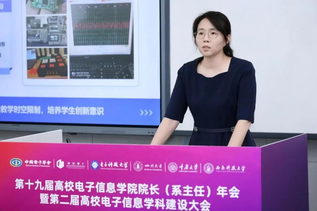 南京邮电大学电子与光学工程学院副院长刘蕾蕾教授围绕《基于工程能力培养的电子信息类专业实验实践体系建设与探索》开展主题报告。她重点介绍了通过实施“创新四层次递进式课程体系,三圈育人,推行理实贯通教学改革”,“双全理念牵引,‘5C’举措驱动,深化电子信息类专业工程教育改革”及“一流学科引领,推行成长导师制,构建全周期学科竞赛体系”三个举措,实现学生工程能力培养和一流专业建设的探索和实践。