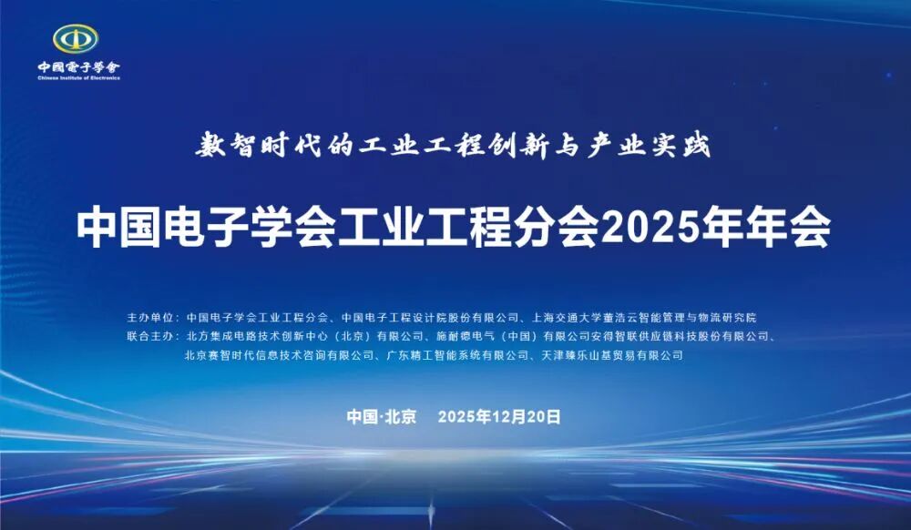 2025年12月20日,中国电子学会工业工程分会2025年年会在北京隆重召开。本次年会以“数智时代的工业工程创新与产业实践”为主题,面向智能制造、数字化转型与绿色低碳协同推进的时代趋势,聚焦制造业复杂系统难题,分享前沿技术及创新成果应用,为工业工程赋能产业高质量发展凝聚共识,汇聚动能。