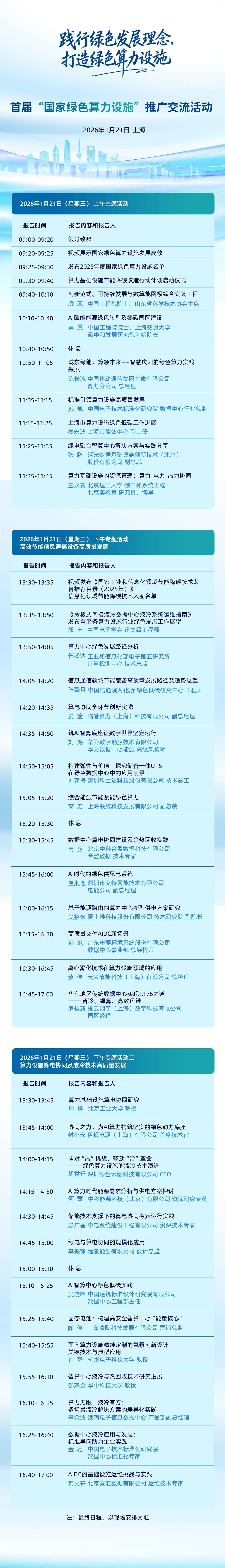 本次活动以“践行绿色发展理念,打造绿色算力设施”为主题,设一个主题活动以及“高效节能信息通信设备高质量发展”和“算力设施算电协同及液冷技术高质量发展”两个专题活动。活动期间将通过视频展示国家绿色算力设施发展成效,发布《2025年度国家绿色算力设施名单》和《国家工业和信息化领域节能降碳技术装备推荐目录(2025年版)》信息化领域节能降碳技术的入围名单。