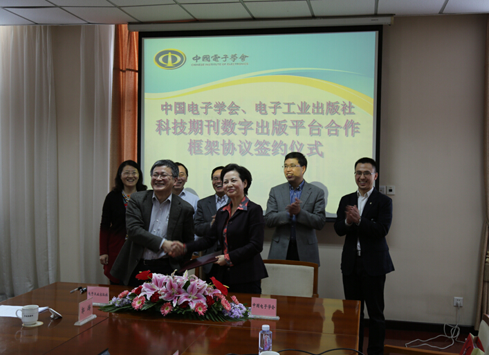 随后举行了"中国电子学会、电子工业出版社科技期刊数字出版平台合作框架协议签约仪式",在仪式上,徐晓兰秘书长和敖然主任委员分别代表中国电子学会和电子工业出版社签署了协议,根据协议,双方将在"中国电子信息科技期刊数字平台"上开展合作,建设国内领先的拥有电子信息技术领域内最丰富的文献资源及优秀推荐刊目信息期刊出版数字平台,共同推进电子信息技术领域的数字出版和数字文献服务。