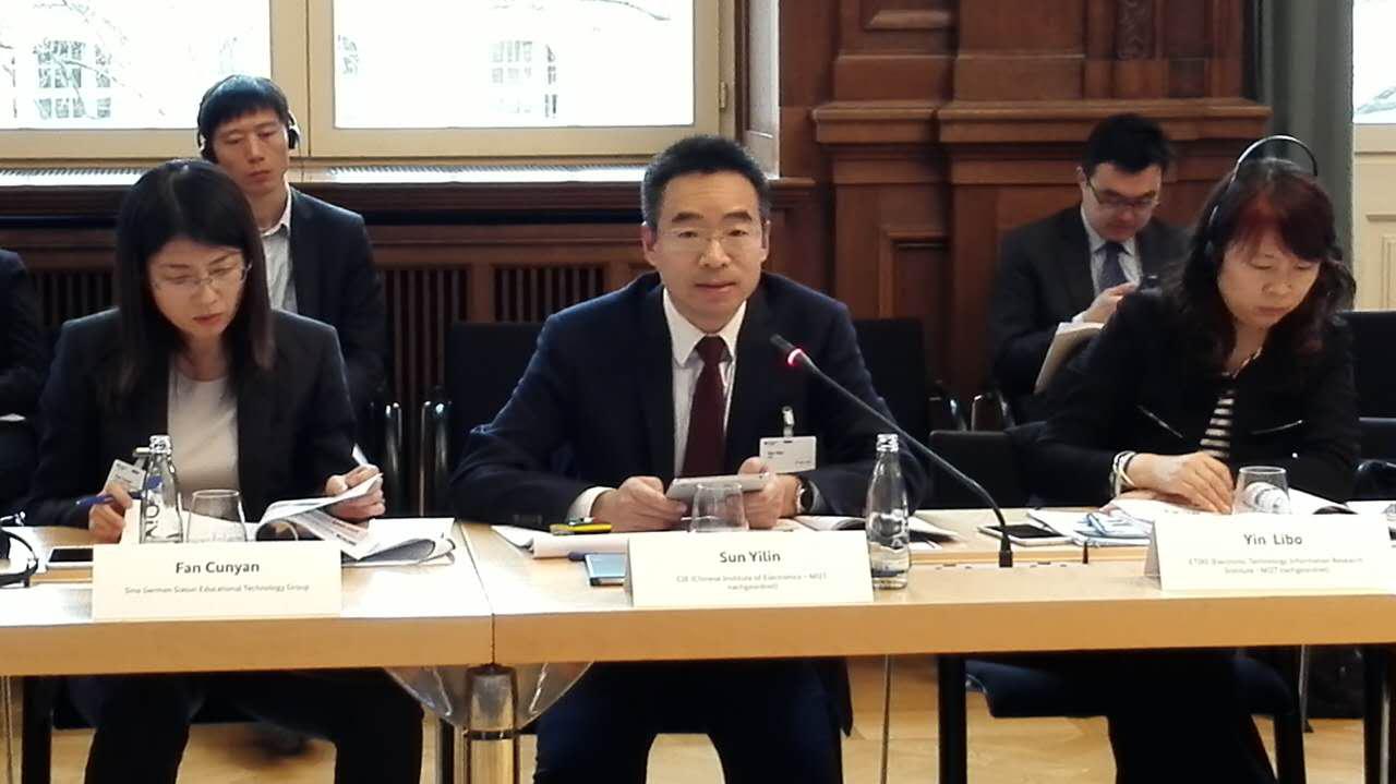 中国电子学会孙以林副秘书长出席了闭门会议、公开会议并在"智能制造和工业4.0"分论坛上做了主旨发言。战略研究与咨询服务中心副主任陈玥如陪同参加。孙以林副秘书长在主旨发言中就"现行政策中企业面临的挑战"从中方视角进行了全面的阐述,内容包括中国智能制造领域现阶段发展成果、中德智能制造合作取得的进展、中国企业在与德国合作中面临的问题与挑战、对德国政府及机构加强中德智能制造合作的建议等。