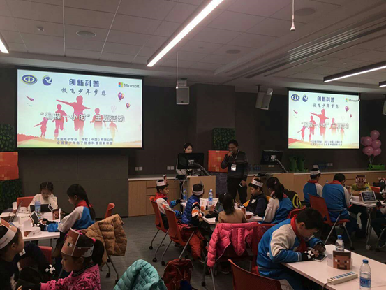 2016年12月4日上午,由全国青少年电子信息科普创新联盟发起单位微软(中国)有限公司和中国电子学会联合举办的"编程一小时"主题活动在微软中国总部举办。来自全国青少年电子信息科普创新联盟、蒲公英中学、八一学校和以及中国科协相关学会等单位的约200名学生走进微软会议活动室,参加了"编程一小时"活动。
