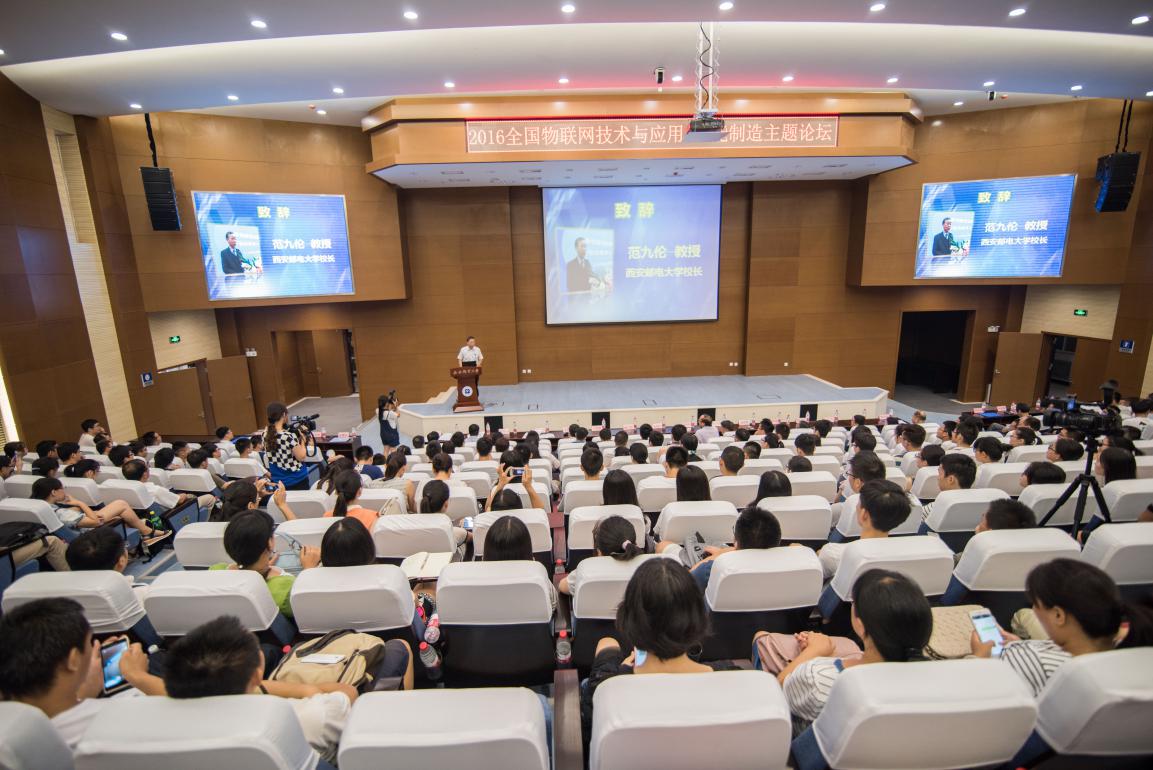 由中国电子学会通信学分会、中国通信学会物联网委员会联合主办,西安邮电大学与江苏省物联网技术与应用协同创新中心联合承办的"2016年全国物联网技术与应用·智能制造主题论坛"于8月5日在西安邮电大学长安校区逸夫报告厅隆重召开。西安邮电大学副校长蒋林教授主持大会,中国电子学会副理事长、中国科学院院士陆建华教授致开幕辞,西安邮电大学校长范九伦教授致欢迎辞。南京邮电大学原副校长、江苏省物联网技术与应用协同创新中心主任、中国电子学会通信学分会主任委员和中国通信学会物联网委员会主任委员朱洪波教授、中国电子学会通信学分会和中国通信学会物联网委员会部分委员、来自全国各界的业内专家学者以及相关领域代表400余人出席了论坛。
