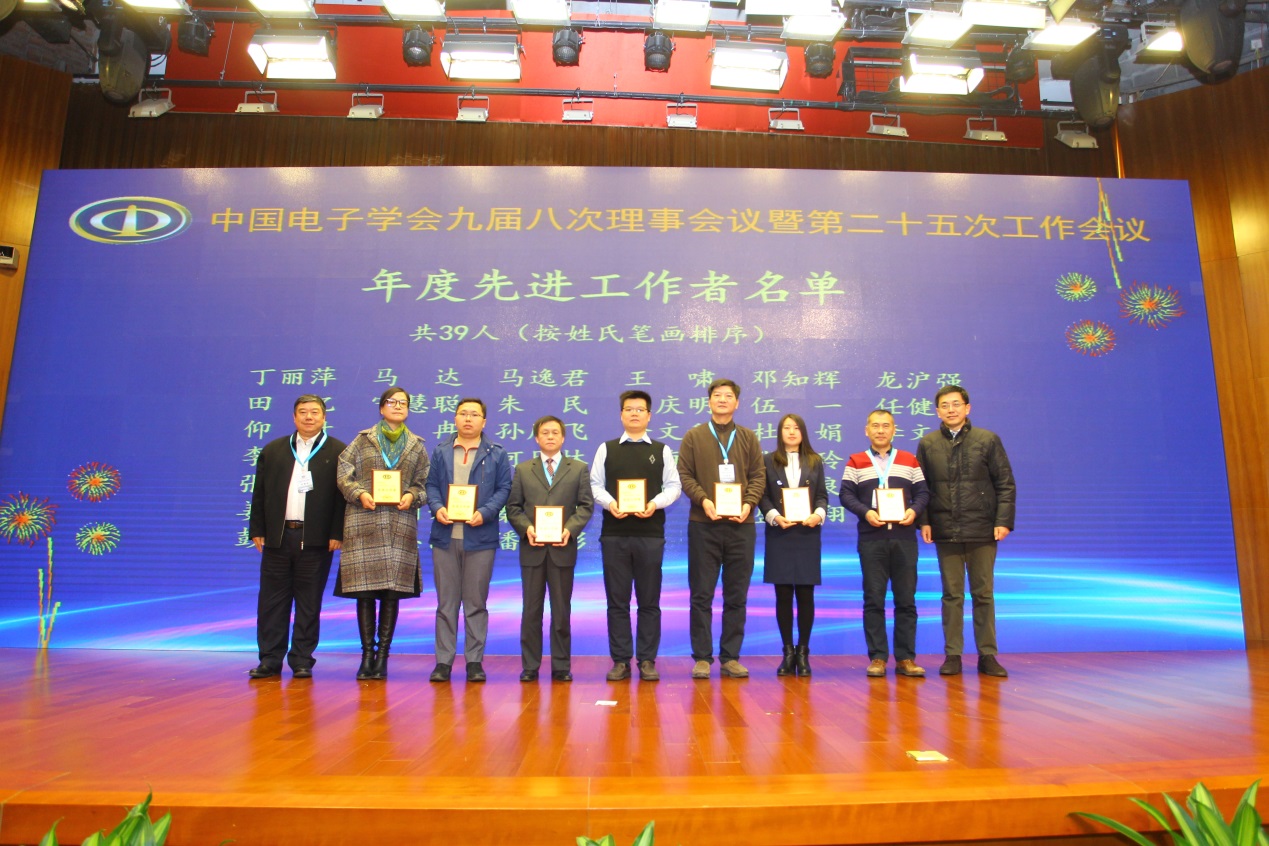 学会在工作会议上公布了2017年度中国电子学会会士名单,表彰了年度先进集体及先进工作者,并向获奖集体及个人颁发了奖杯、奖牌。