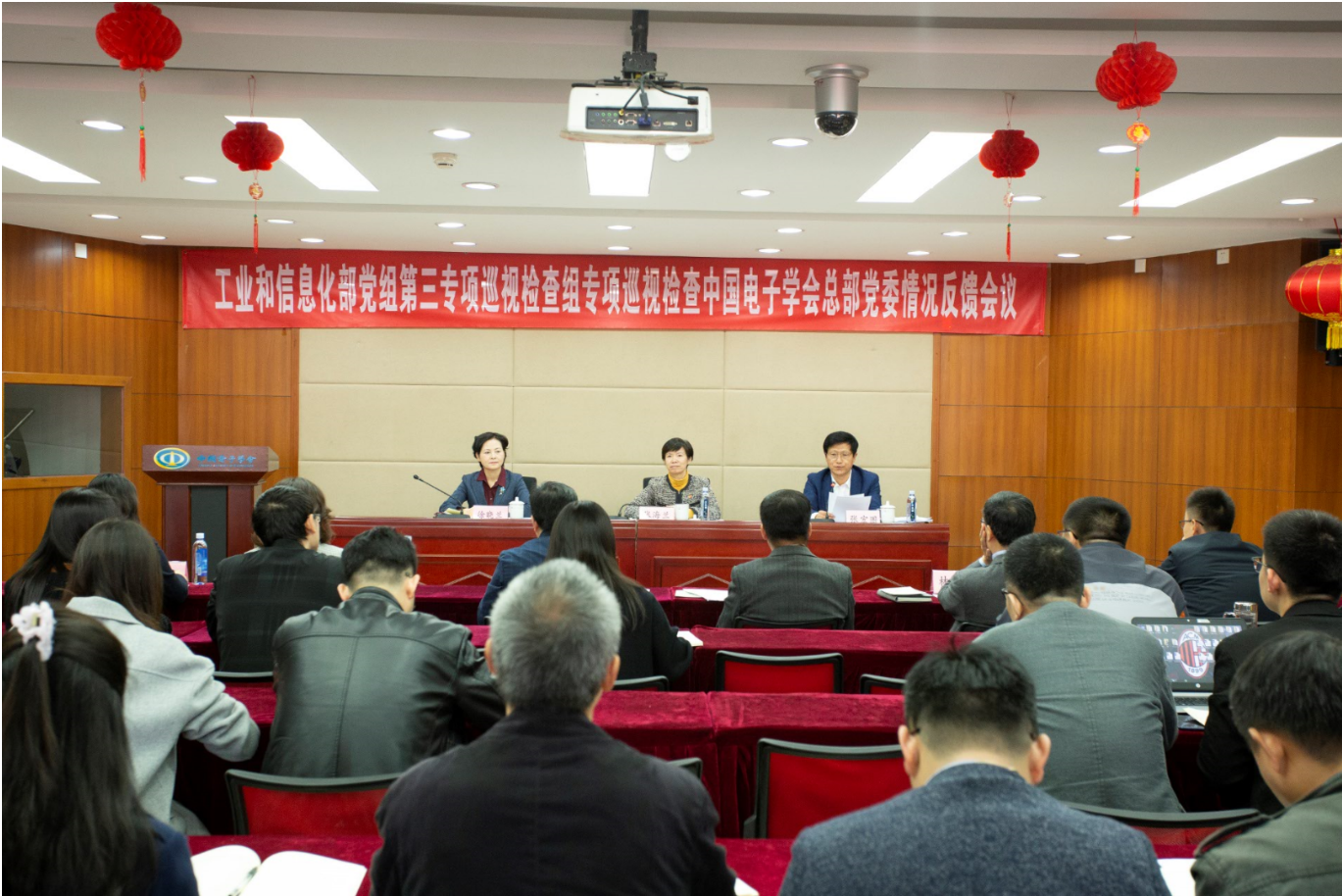根据工业和信息化部党组巡视工作部署,2018年10月30日上午,部党组第三专项巡视检查组向中国电子学会(以下简称"学会")总部党委反馈专项巡视检查情况。会前,第三专项巡视检查组先向学会总部党委书记张宏图反馈了专项巡视检查情况。反馈会议上,第三专项巡视检查组副组长张海兰同志向学会总部党员干部反馈了专项巡视检查情况,并代表巡视办传达了做好巡视整改工作的有关要求。张宏图同志主持反馈大会并代表总部党委班子就做好巡视整改工作作表态发言。