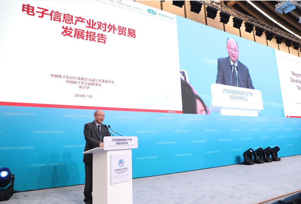 随后,中国电子信息行业联合会副会长、中国电子学会副理事长、中芯国际董事长周子学代表中国电子信息行业联合会、中国电子学会共同发布《电子信息产业对外贸易发展报告》,报告回顾了中国电子信息产业的发展历程:中国电子信息产品对外贸易自20世纪50年代开始,经过一段停滞或缓慢发展阶段,随着改革开放,尤其是中国加入WTO以来,我国电子信息产业紧抓全球化快速发展的历史机遇,不断在更大范围、更广领域、更高层次参与国际经济竞争和合作。报告深入分析了业中国电子信息产发展的状况,中国电子信息产发展面临的诸多问题。针对这些问题,报告中也给出了很多中肯的意见和建议。未来,预计2018年-2020年中国电子信息产业外贸发展稳中向好的势头还是有望得到进一步巩固。