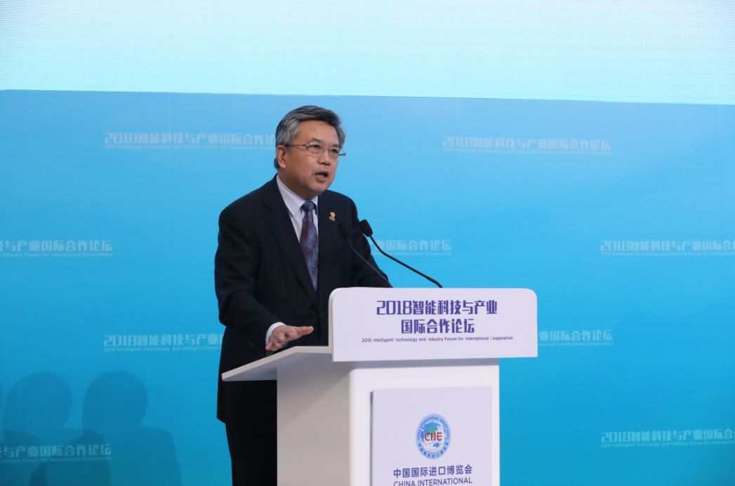 2018智能科技与产业国际合作论坛于11月6日在首届中国国际进口博览会现场成功举办。论坛由中华人民共和国工业和信息化部、江苏省人民政府主办,中国电子学会、中国电子信息行业联合会、江苏省商务厅、江苏省工业和信息化厅承办。本次论坛作为首届中国国际进口博览会智能科技与产业领域唯一论坛,以"共创智能新生态 共享智能新时代"为主题,由主论坛和"昆山智能科技""太仓智能制造"两场分论坛组成。工业和信息化部党组书记、部长苗圩,江苏省委副书记、省长、省政府党组书记吴政隆,中国电子信息行业联合会会长王旭东,美国肯塔基州州长Matthew G.Bevin,美中贸易全国委员会会长Craig Allen,蒙古国矿业与重工业部部长Sumiyabazar Dolgorsuren,江苏省副省长马秋林,江苏省副省长郭元强,库卡全球首席执行官Till Reuter,高通公司首席执行官Steve Mollenkopf,中国电子信息行业联合会副会长、中国电子学会副理事长、中芯国际董事长周子学,工业和信息化部办公厅主任楼宇光,上海美国商会会长Kenneth Jarrett,工业和信息化部国际合作司司长赵永红,徐州工程机械集团有限公司董事长王民,工业和信息化部信息化和软件服务业司司长谢少锋,SAP(思爱普)全球高级副总裁、SAP(思爱普)中国总经理李强,中国电子信息行业联合会秘书长高素梅,百度高级副总裁、中国电子学会副理事长、深度学习技术及应用国家工程实验室主任王海峰,猎豹移动公司首席执行官傅盛,ABB集团亚洲-中东及非洲区总裁、ABB集团执行委员会成员顾纯元等全球智能科技领域专家、企业领袖齐聚一堂,聚焦中国改革开放40周年智能科技领域国际合作新起点,共商国际合作新模式,共建人类智能科技命运共同体。论坛分别由中国科协常委、中国致公党中央常委、中国电子学会副理事长兼秘书长徐晓兰,世界工程组织联合会(WFEO)候任主席、中国电子学会监事长龚克主持。