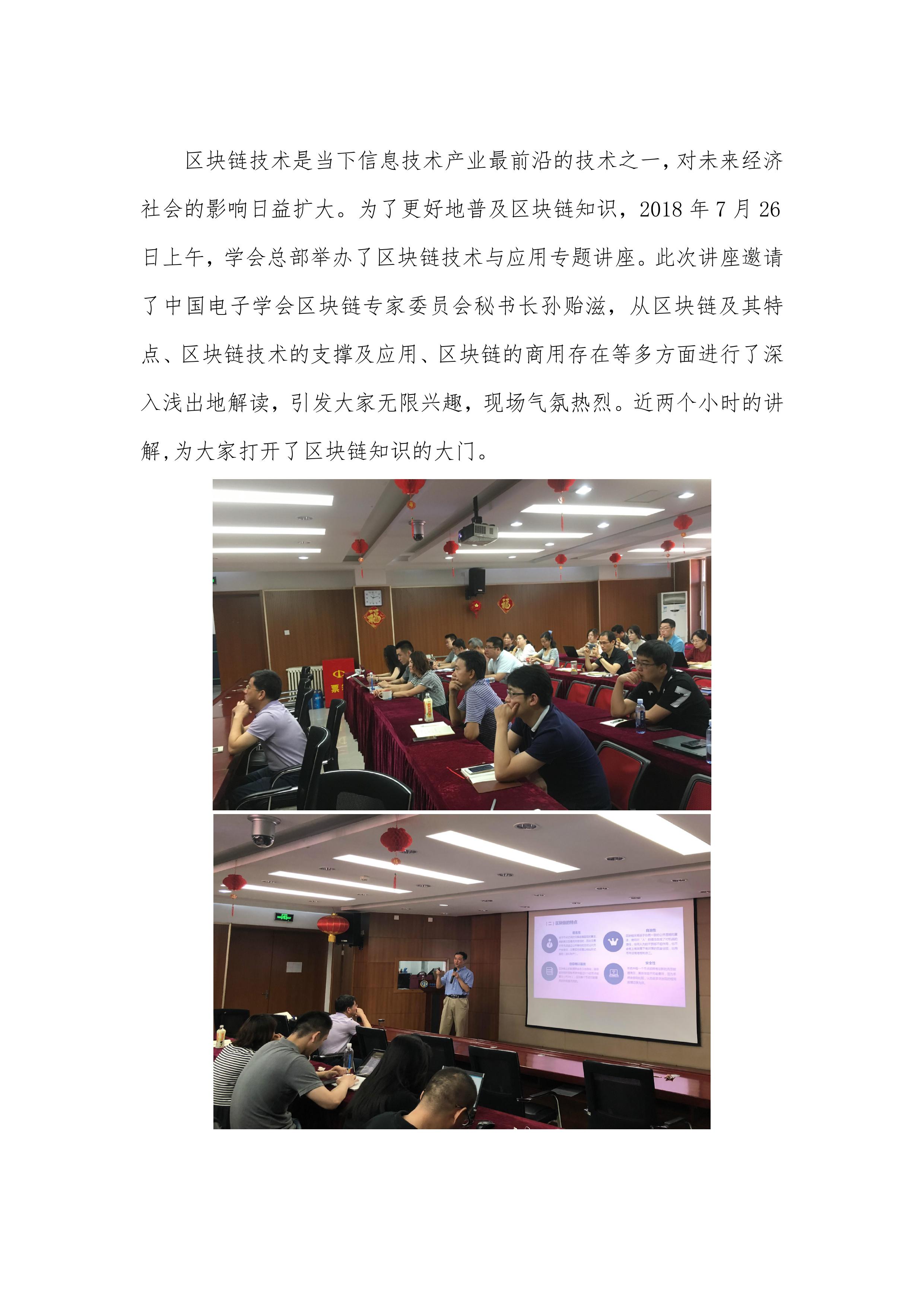 中国电子学会总部开展区块链技术与应用专题讲座