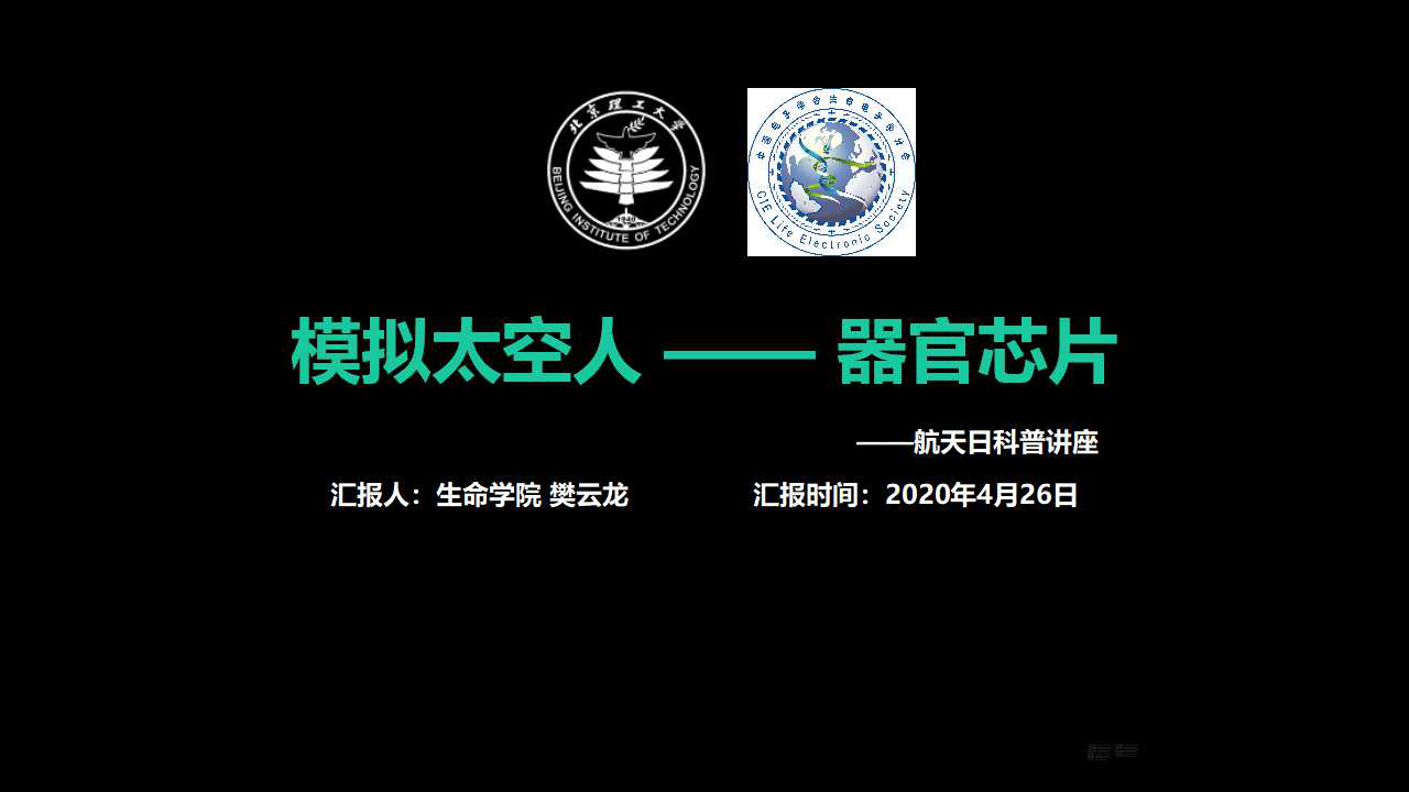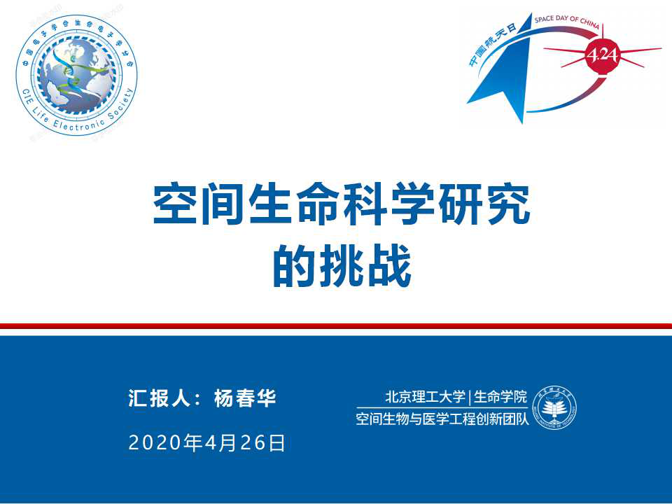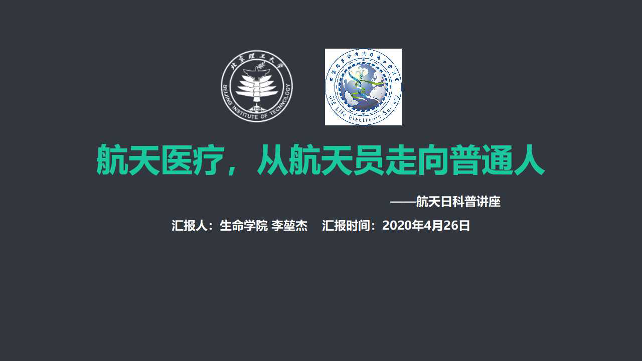 在第五个“中国航天日”到来之际,由中国电子学会生命电子学分会主办的主题为“太空中的生命科学研究”的科普讲座于4月26日19:00在哔哩哔哩直播平台进行直播,主讲人为北京理工大学生命学院空间生物医学工程专业方向在读博士研究生杨春华、樊云龙以及北京理工大学生命学院生物医学工程专业在读硕士研究生李堃杰。