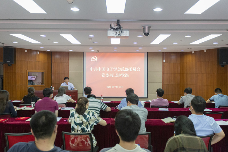 为深入落实中央和国家机关工委及部直属机关党委关于“开展强化政治机关意识教育工作”的要求和部署,2020年7月31日,中国电子学会总部党委书记张宏图同志以《强化政治意识,为“两个强国”建设贡献学会力量》为题,讲授专题党课。学会总部党委委员、中层干部、各党支部书记、全体党员、入党积极分子60余人参加学习。