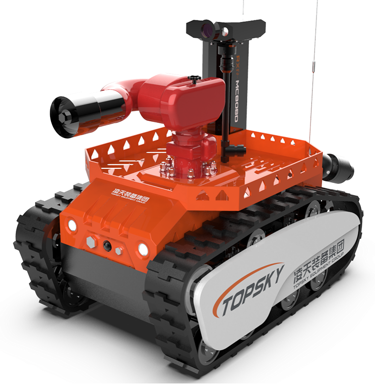 RXR-MC80BD防爆消防灭火侦察机器人作为特种机器人的一种,采用锂电池电源作为动力源,使用无线遥控的方式远距离操控消防灭火机器人。可使用于各种大型石油化工企业,隧道、地铁等不断增多的油品燃气、毒气泄漏爆炸、隧道、地铁坍塌等灾害隐患多发地,灭火机器人在抢险救援中发挥举足轻重的作用,主要替代消防员在危化火场或浓烟火灾现场救援的专用设备。本产品具备灭火、音视频侦察、有毒有害气体侦察、灾区环境侦察功能。