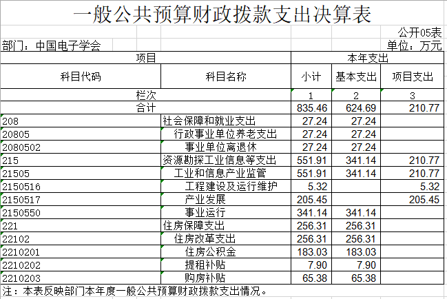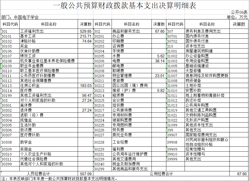 中国电子学会 2023年度一般公共预算财政拨款基本支出624.69 万元。其中,人员经费557.09万元,主要包括:基本工资、津贴补贴、住房公积金、退休费、其他工资福利支出;公用经费67.6万元,主要包括:水费、电费、物业管理费、维修(护)费。