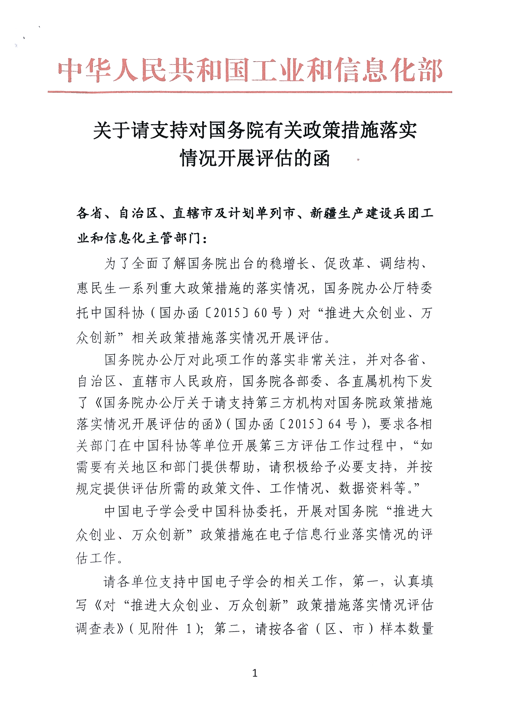 附件1对国务院“推进大众创业、万众创新”政策措施落实情况评估调查表