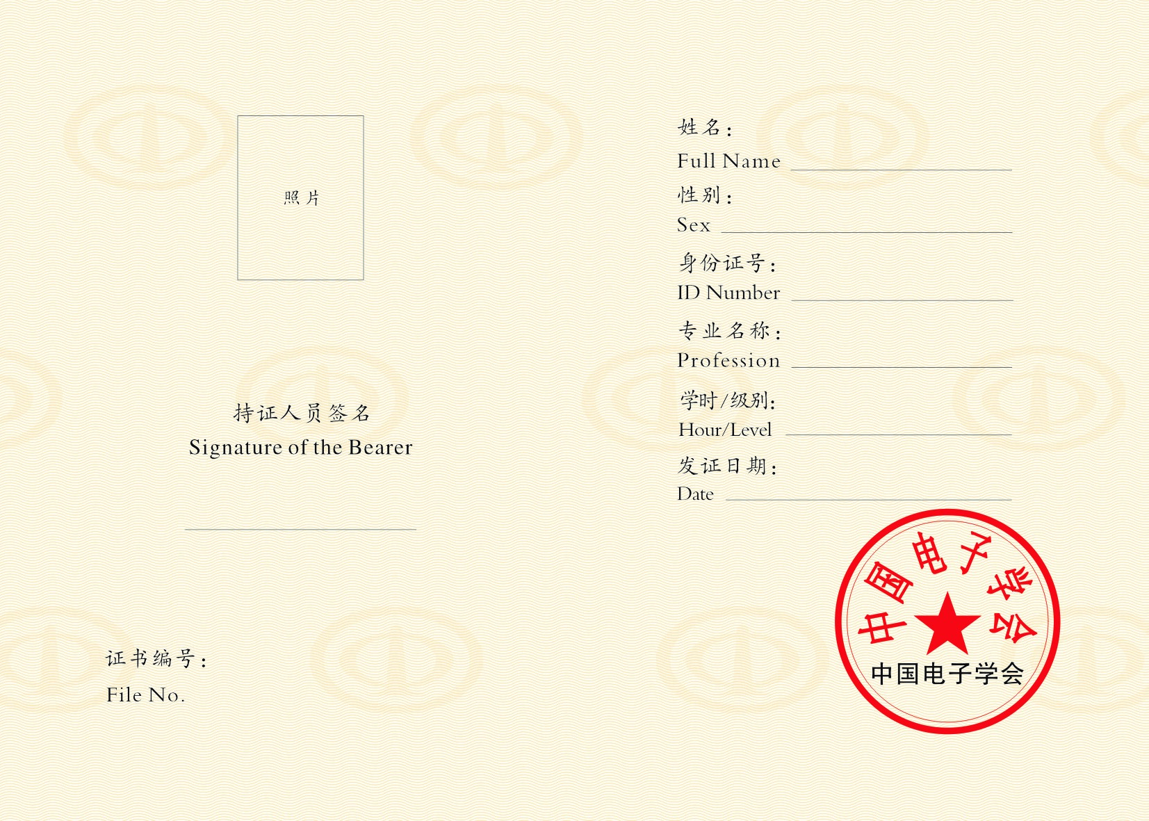 全国电子信息专业技术人员水平评价是中国电子学会面向会员开展的人才评价服务;本证书是持证人具有电子信息相应专业技术能力和水平的凭证;本证书可以作为用人单位评聘持证人的重要参考依据;本证书全国范围内通用,加盖中国电子学会钢印有效。