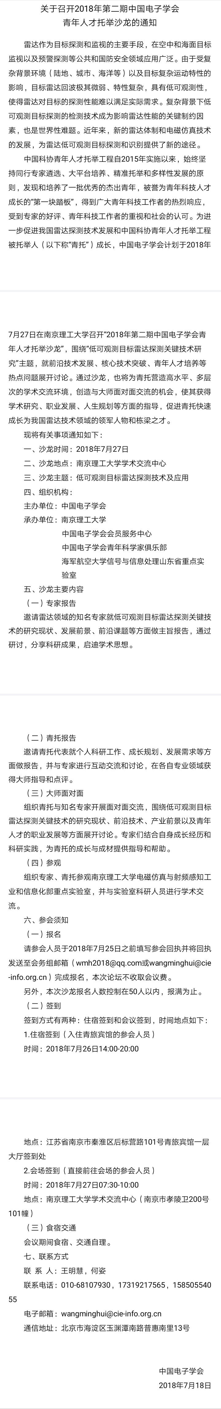 附件: 1.2018年第二期中国电子学会青年人才托举沙龙议程 2.参会回执 3.会议地图