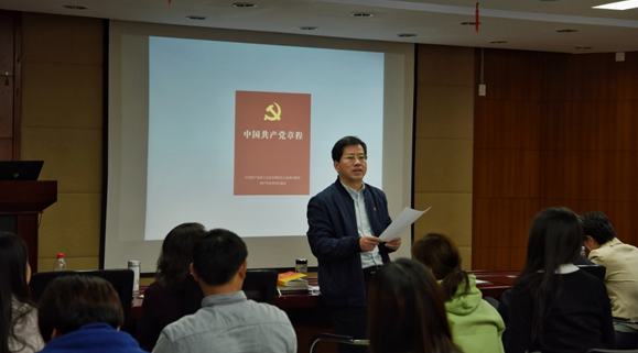 党委委员王天虹同志以"学习十九大,重温党章"为题,针对十九大党章修改部分,为与会同志进行了解读。王天虹同志从党章的性质、十九大党章修改内容、党建的历史脉络三个方面,对十九大党章进行了系统的宣讲。最后,王天虹同志结合学会总部实际,指出要认真学习新党章,并将十九大精神作为指导学会工作的行动指南,促进学会各项事业发展。